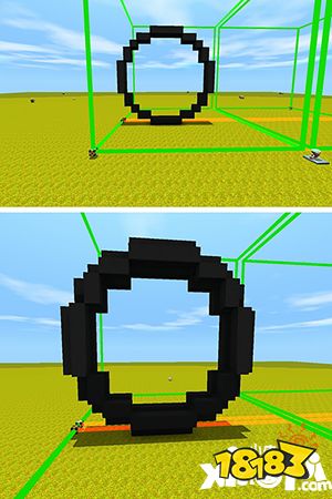 第一步:在一个微缩区域中间,用黑色做一个15格的圆,然后在这个圆的俩边内缩一格,做为轮胎。