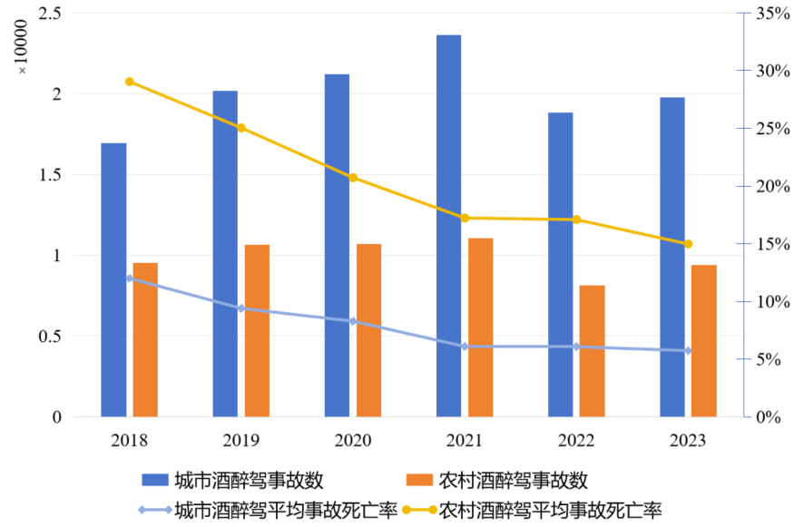 农村地区人情往来、聚饮文化浓厚,公共交通、代驾服务覆盖不足,加之巡查力度有限,助长了酒后驾车的侥幸心理。农村公路酒驾事故死亡率约20%,是城市的3倍。在涉酒亡人事故中,农村驾驶人血液酒精含量高于城市,酒后超速倾向也更明显,车速平均提升3.5-8.8km/h。