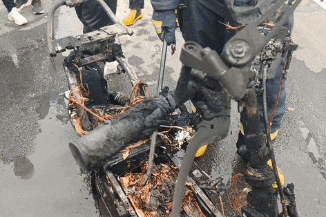 据悉,这辆电动自行车于2019年8月在实体店购入,车主对车辆进行了非法改装,使其同时搭载了60V铅酸电池和60V锂电池,以切换使用。该车起火时,处于停放未充电状态,起火原因为锂电池热失控。