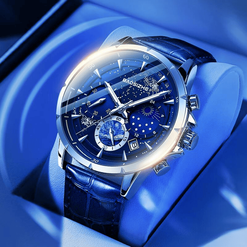 灵感来源于梵高的名作,独特的星空蓝表盘设计仿佛将夜空的璀璨全部融入其中,吸引四方目光。佩戴这款手表,无疑是对生活品味的深刻诠释,展现出个性化的审美追求。