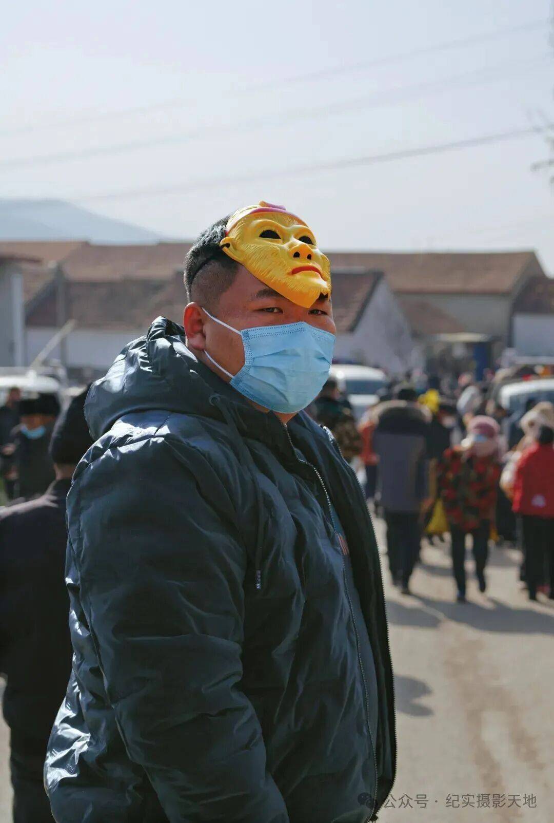 2023年1月18日,山东省临沂市平邑县地方镇,小伙头顶“美猴王”面具,在街头逛来逛去扮酷。