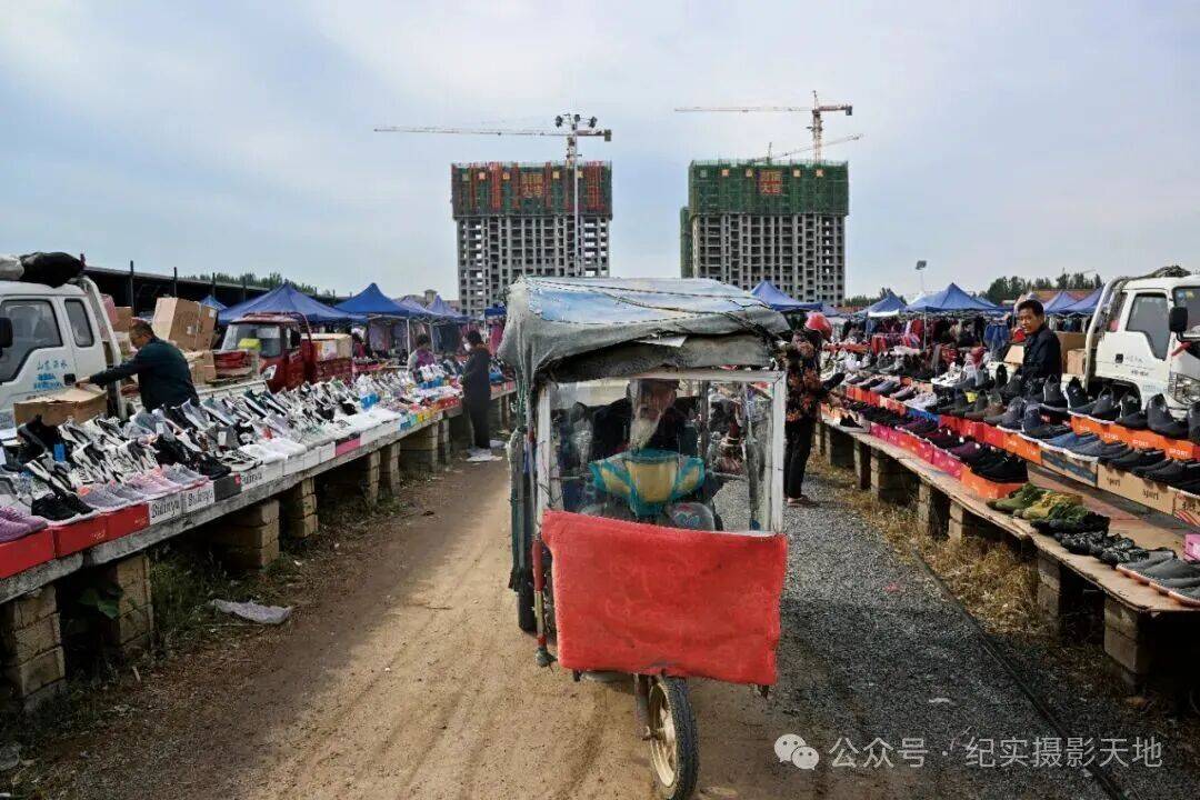 2022年10月6日,山东省临沂市沂水县许家湖镇,七旬老人骑着三轮车,摇摇摆摆地开进了鞋摊。上了年纪的山里人习惯了逢集必逛。