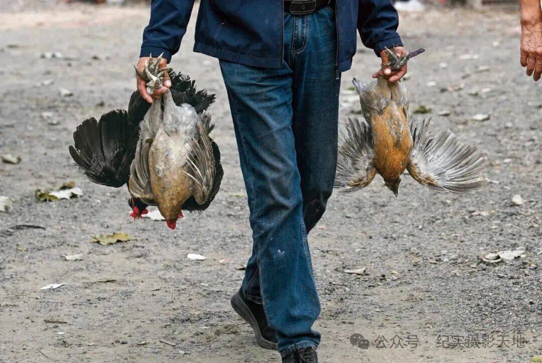 2023年10月18日,山东省淄博市沂源县东里镇,逛客收获了几只鸡,不虚此行。