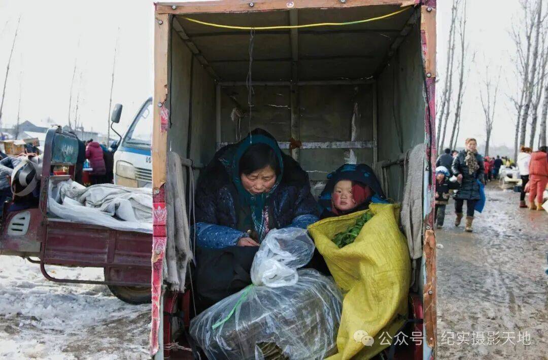 那些挎着竹篮徘徊的老妪,倚着拖拉机抽烟的汉子,蹲在石碾旁啃油条的孩子,在快门声中浑然天成地活着。他们与郭树富共享着某种秘而不宣的默契:在这个举着相机的游走者眼前,山民们既不闪躲也不端持,依然用皴裂的手点数着零钞,用豁牙的嘴咀嚼着家长里短。这种近乎禅定的自在,让影像中的每道褶皱都渗出土地的温度。