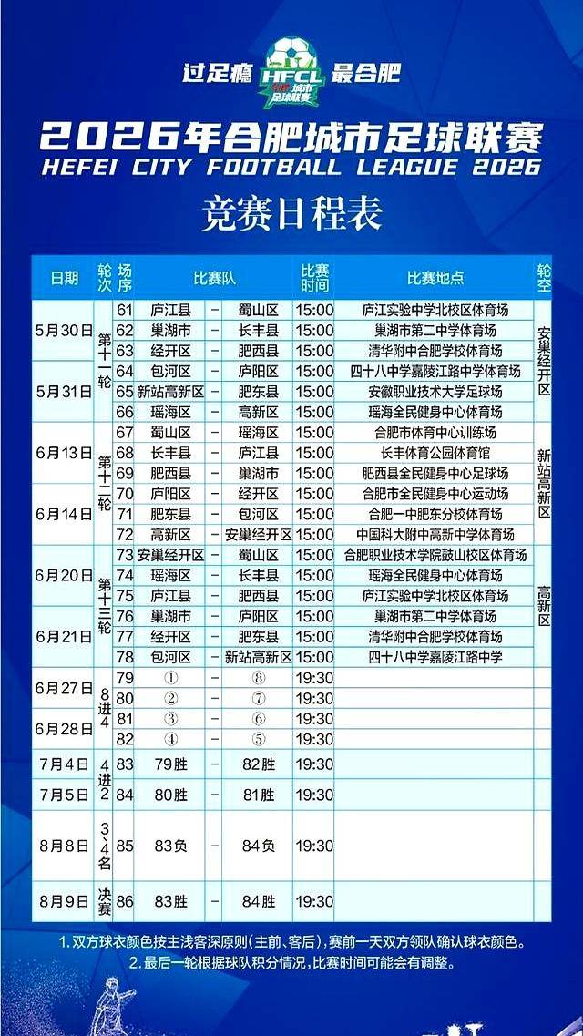 先说说这参赛阵容,绝对打破你对业余联赛的想象。13支队伍可不是随便凑数的,每个区县都拿出了看家本领组队。揭幕战就在合肥体育中心开打,蜀山区和高新区这俩老对手首轮就要硬碰硬。要我说啊,这种同城德比最有看头,场上球员说不定就是你家隔壁开超市的王老板,或者孩子学校的体育老师。联赛特意放宽了报名条件,不管你是土生土长的合肥人,还是在这读书工作的小伙伴,甚至送外卖的小哥都能报名。我打听到已经有职业球员悄悄混在队伍里,到时候业余高手和专业选手同场较量,那画面想想都刺激。
