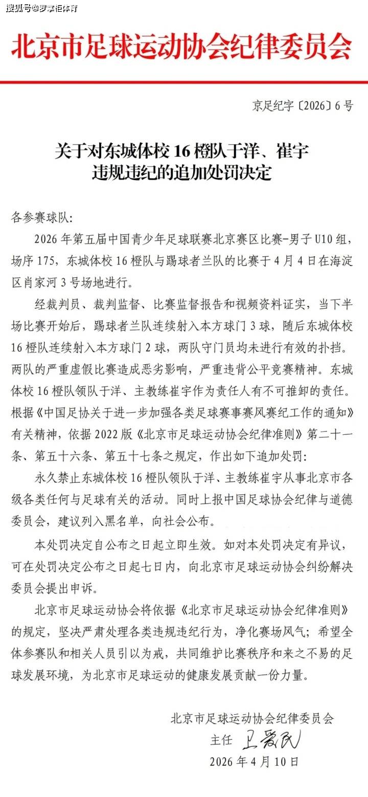 足球直播,欧洲杯直播,体育直播,球客直播,雷速体育,篮球直播,风驰直播,NBA直播,英超直播,足球比分,足球赛事,意甲,欧冠,世界杯,世界杯直播,村超,贵州村超,波胆,角球,串球,大小球当足协对陈戌源、李铁等73人终身禁足、13家职业俱乐部罚分罚款的 “假赌黑” 严打风暴余波未平时,4月4日北京青少年足球联赛U10组的荒诞一幕,却给了中国足球最沉重的一击 —— 东城体校 16橙队与踢球者兰队,两队不到10岁的孩子,在场上公然连续自摆乌龙,守门员刻意不扑救,联手制造5粒乌龙球的假球闹剧。