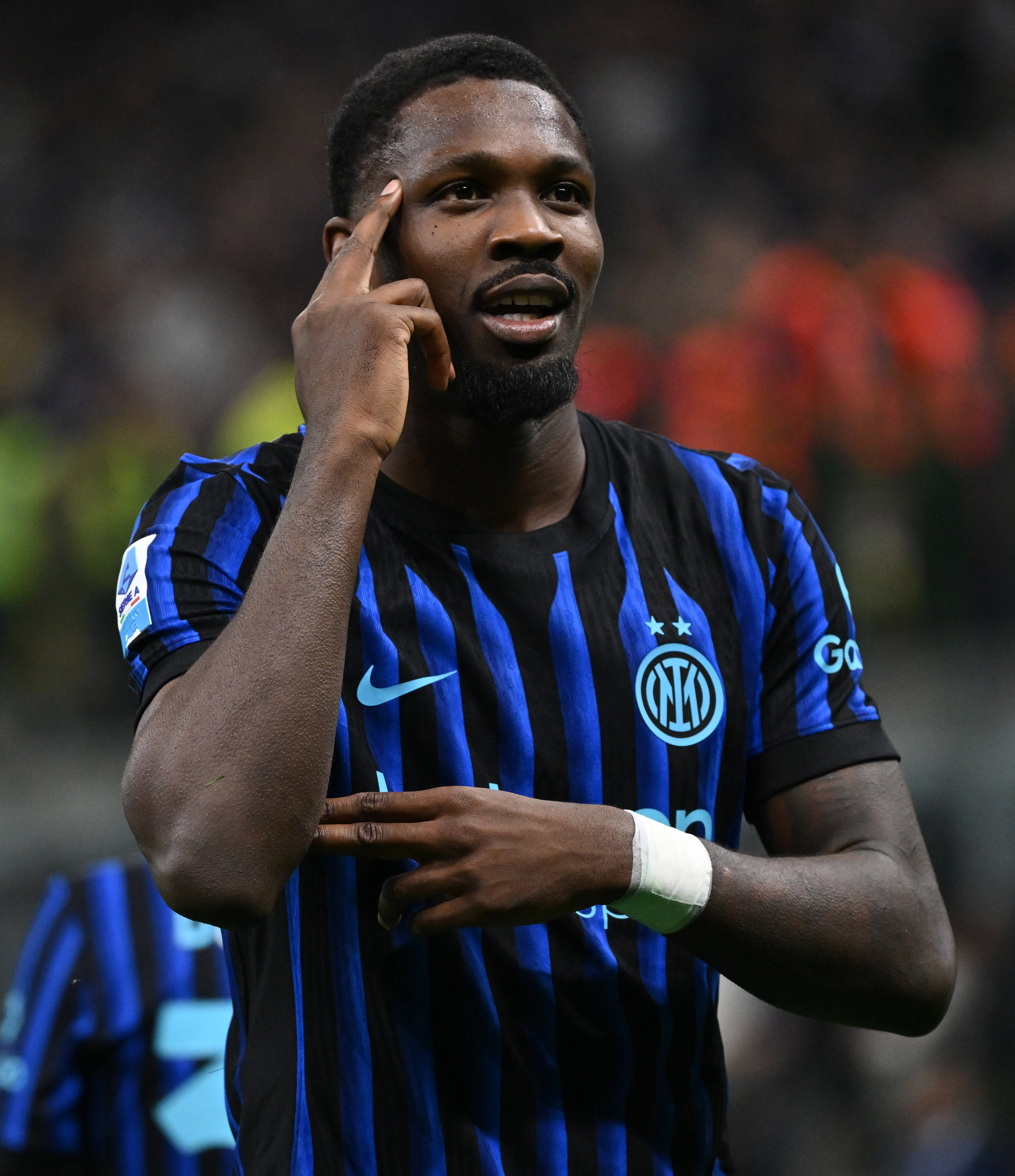 4月17日,国际米兰队球员图拉姆庆祝进球。 新华社发(阿尔贝托·林格利亚摄)