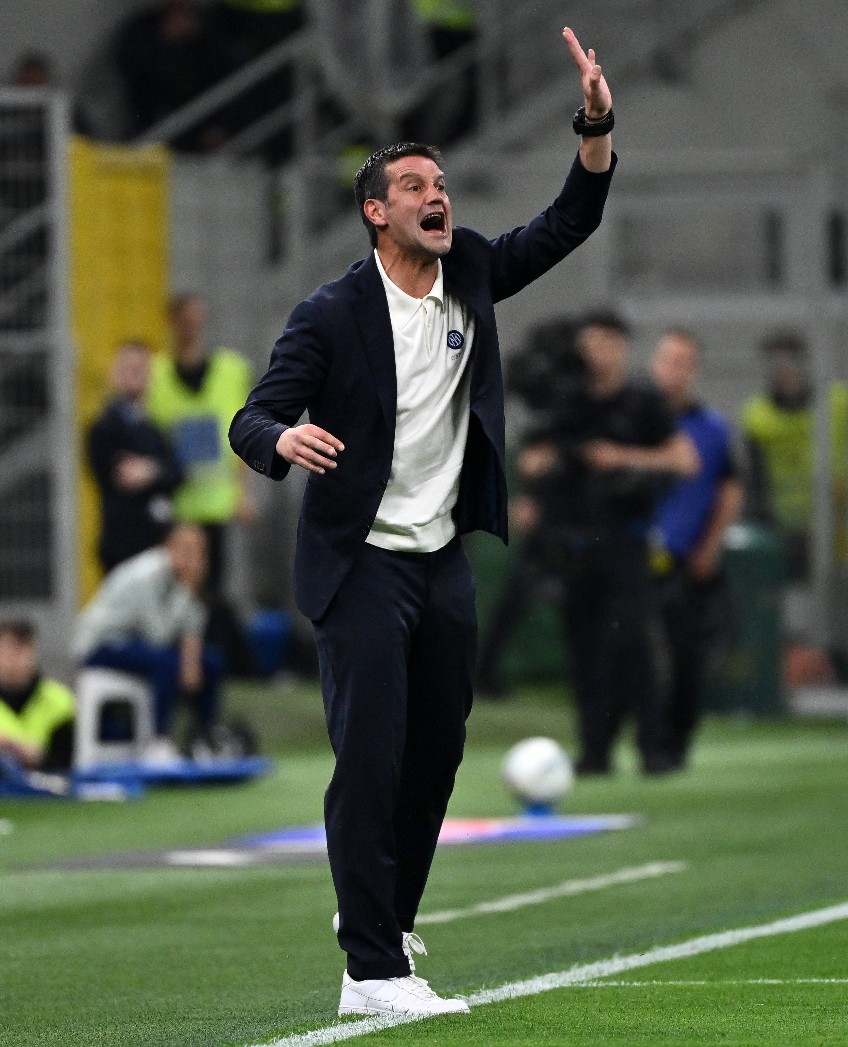 4月17日,国际米兰队主教练齐沃在场边指挥。 新华社发(阿尔贝托·林格利亚摄)