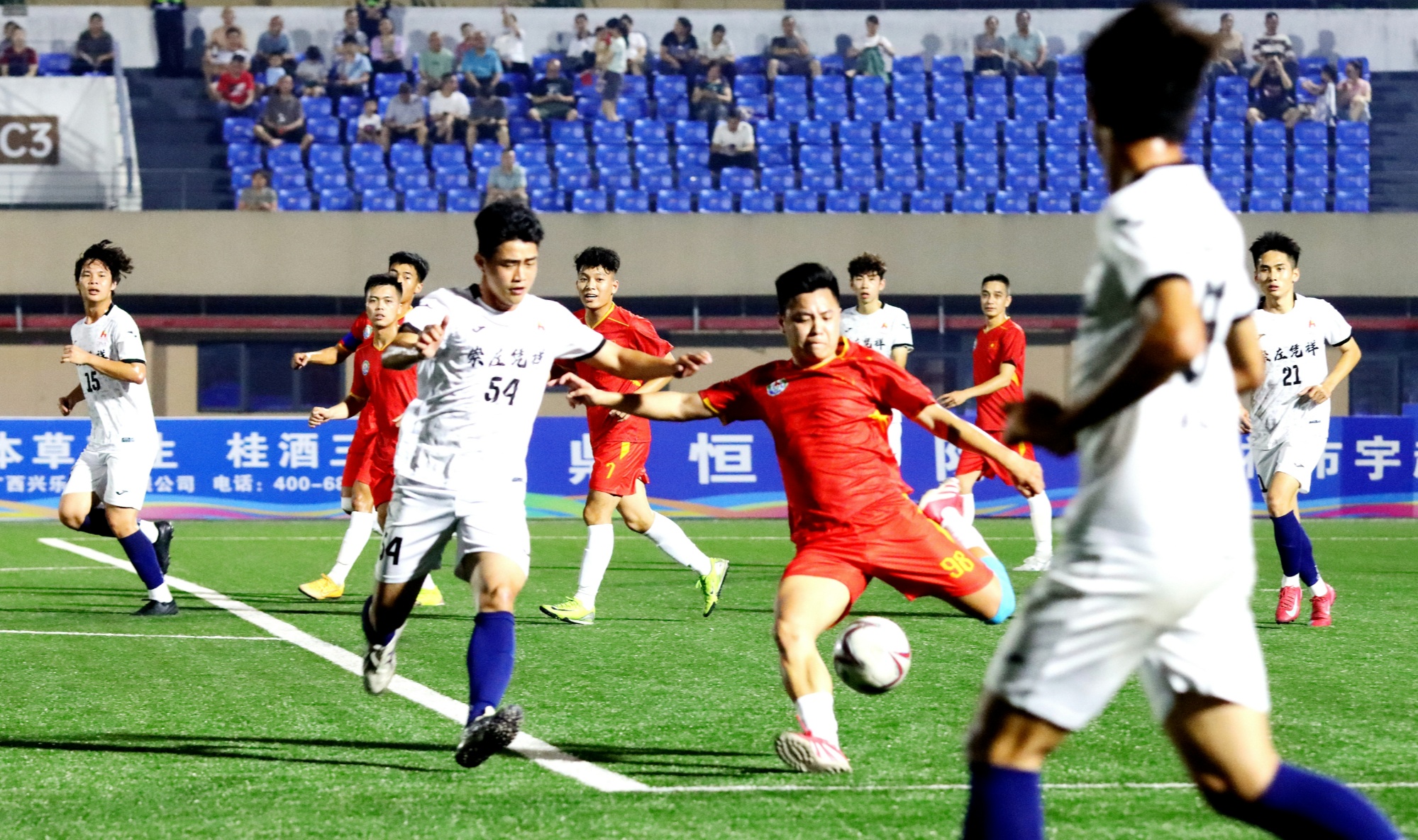 比赛打响后,双方队员精神抖擞、斗志昂扬,攻防转换节奏紧凑,边路突破犀利迅猛,门前抢点精准果断,精彩配合与攻防引得现场观众阵阵喝彩。观众挥舞旗帜、呐喊助威,掌声、欢呼声、加油声此起彼伏,边境群众观赛热情高涨。